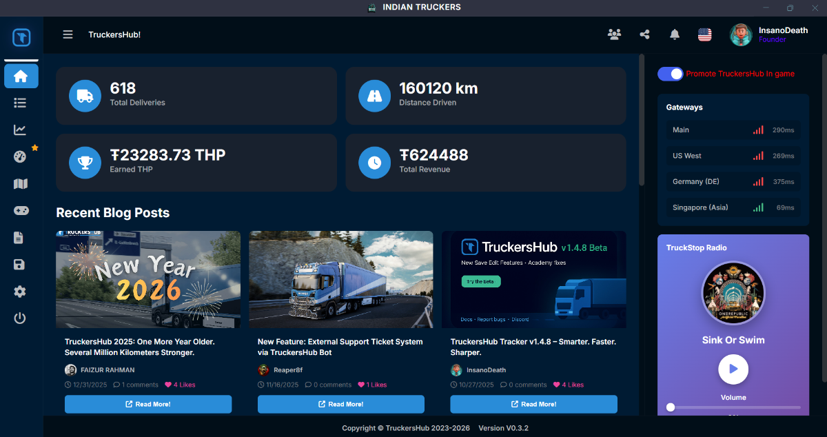 6. TruckersHub Website Update V1.5.0 Added Year Recap Feature. Improved sidebar with collapsible categories. Improved Response Time. Improved VTC Boosting System. Fixed Leaderboard page issues. Fixed Profile Loading Issues. Fixed Profile Seettings Page with login system. Fixed Statistics Page. Added View Boosters Option. Fixed Integrations Page for Discord Bot. Removed Dedicated Server Purchase Options. Improved Notification View. Admin Panel Improvements. Improved Application System. Internal Logic Changes. Database Logic Changes. Upcoming New TruckersHub Client Support. Added Calendar for Convoy Events. Improved Job Reporting System. Improved Job reports management system for Operations Team. Roles System Updated. Minor Simulation System Bugs fixes. VTC Blogs System fixes for quick Loading. Fixed VTC Notifications System. Improved Caching System. Fixed Issues of user cache. Improved Slot Booking System. Improved Backend Socket Connections. Improved SEO. Improved Role assigning system. Fixed Simulation Statistics page issues. Added New Trucks and corrected there pricing in Simulation System. Added DLC List in VTC Analytics page. Fixes in VTC Creation and Edit page. Fixed VTC Ranking System. Added TruckersHub Staff Loa System. Major Bug Fixes in backend and frontend.